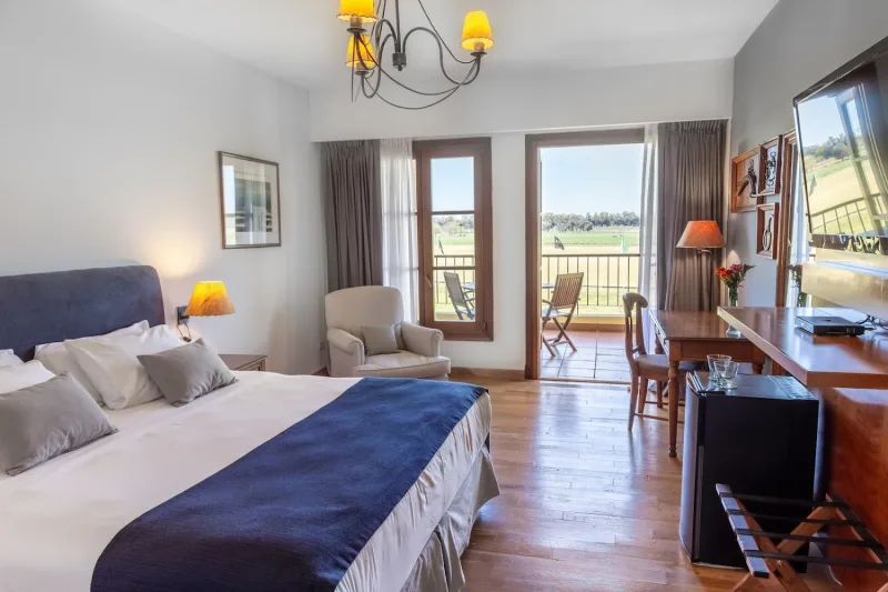 Complejo turístico colonial con piscina cubierta climatizada, restaurante cálido y clases de equitación.