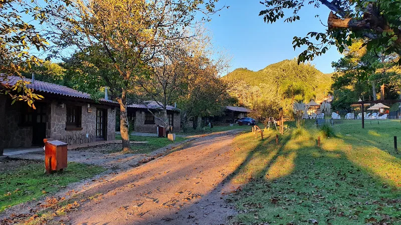 Tranquilo complejo turístico rural con cabañas rústicas con cocina, piscina al aire libre y cancha de fútbol.