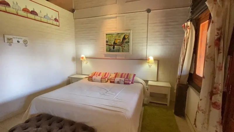 Hotel rural informal con habitaciones y cabañas tranquilas, piscina al aire libre y desayuno incluido.