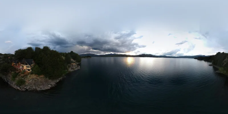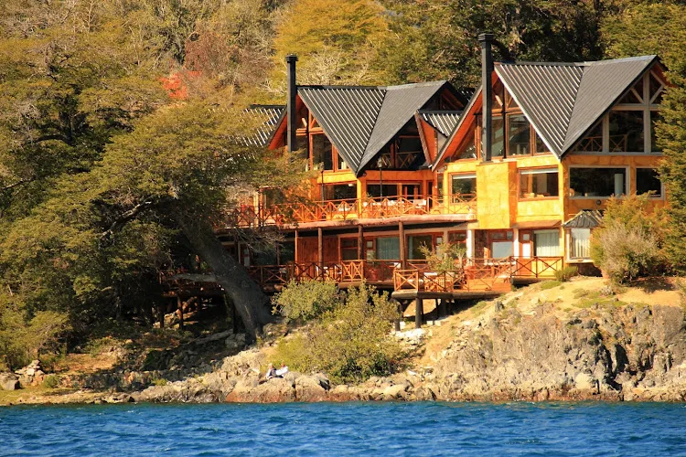 Habitaciones y cabañas con cocina integrada en alojamiento frente al lago con restaurante y terraza.