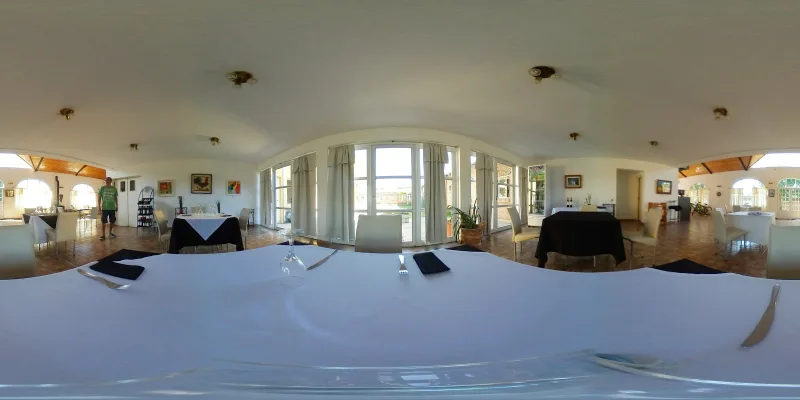 Habitaciones cálidas y sencillas en hotel familiar informal con piscina al aire libre y restaurante luminoso.