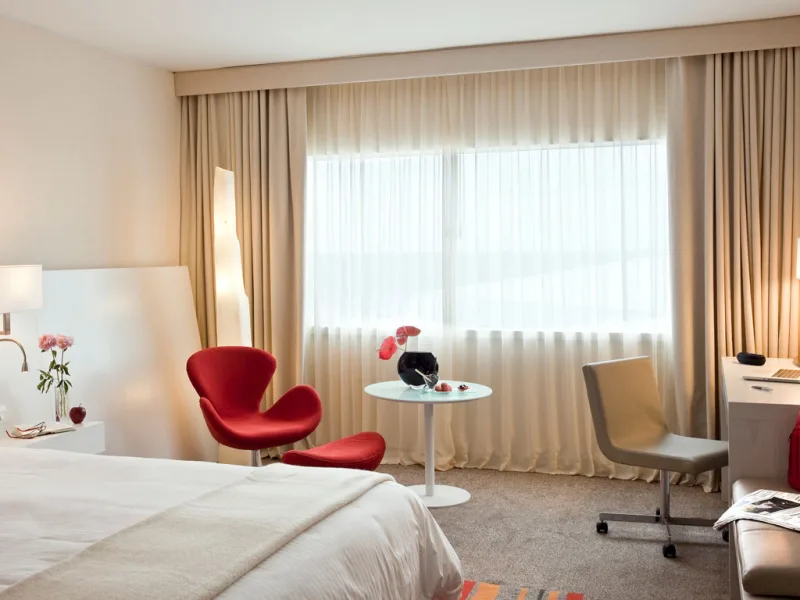 Sofisticado hotel casino con restaurante, bares, club nocturno, espacio para eventos y piscina.